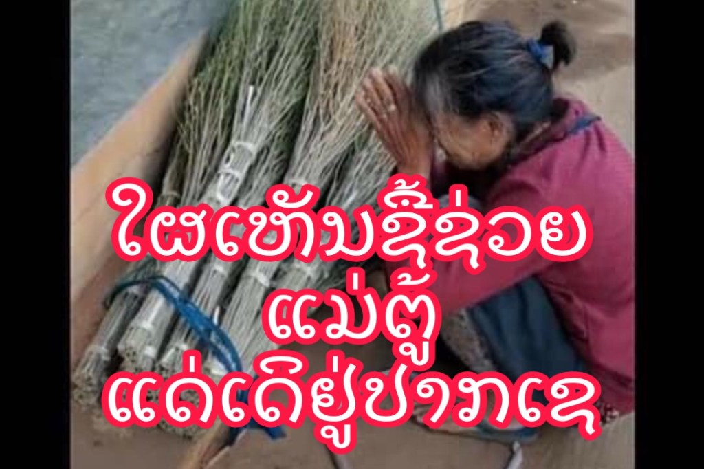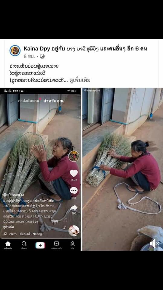 ແມ່ຕູ້ຢູ່ລຳພັງຄົນດຽວ ອາໄສຕັດຫຍ້າຂັດມາເຮັດຟອຍ ເລາະຂາຍລ້ຽງຊີບ ໃຜເຫັນກະຝາກຊື້ຊ່ວຍລາວແນ່ເດີ້ ລາວເລາະຂາຍແຖວຫລັກ 2 ປາກເຊ, ແຖວຕະຫຼາດດາວເຮືອງ ເຫັນແລ້ວເປັນຕາດູຕົນແທ້ເດ່.