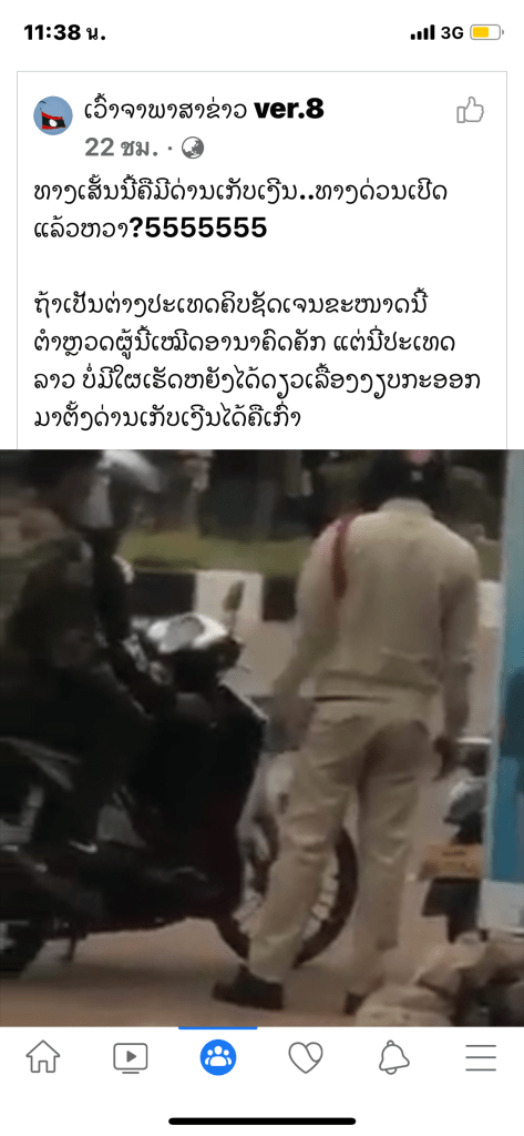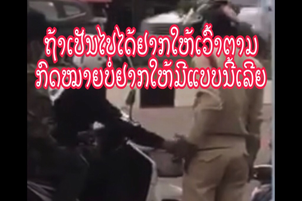 ຖ້າເປັນຕ່າງປະເທດຄິບຊັດເຈນຂະໜາດນີ້ຕຳຫຼວດຜູ້ນີ້ໄດ້ອອກຕຳຫລວດແລ້ວແລະຊາຍຄົນທີ່ຖືກລັດຄົງໄດ້ຖືກຕັກເຕືອນແລ້ວ ແຕ່ນີ່ປະເທດລາວ ບໍ່ມີໃຜເຮັດຫຍັງໄດ້ດຽວເລື້ອງງຽບບໍ່ຢາກໃຫ້ມີພຶດຕິກຳແບບນີ້ລູກຫລານທາງຫນ້າຊິຄິດແນວໃດຄິດຫາອານາຄົດຂອງຊາດແດ່ທຸກຄົນຢ່າພາກັນເຫັນແກ່ຕົວອານາຄົດຂອງຊາດຂື້ນຢູ່ກັບການກະທຳຂອງເຮົາແລ້ວເດັກນ້ອຍເຫັນແບບນີ້ລະແລ້ວຕໍ່ໄປຊາດລາວຈະເປັນແນວໃດເຖົ້າແກ່ເພິ່ນຮັກສາມາຈັກກີ້ຮ້ອຍປີແລ້ວຮອດຍຸກເຮົາເຮົາຈະແບບນີ້ບໍ່ສົມຊື້ຄຳຂວັນຂອງລາວເລີຍພາກັນຮັກສາຊ່ວຍກັນຄົນລະໄມ້ຄົນລະມືປະເທດລາວຈື່ງຈະນ່າຢູ່ຂື້ນ