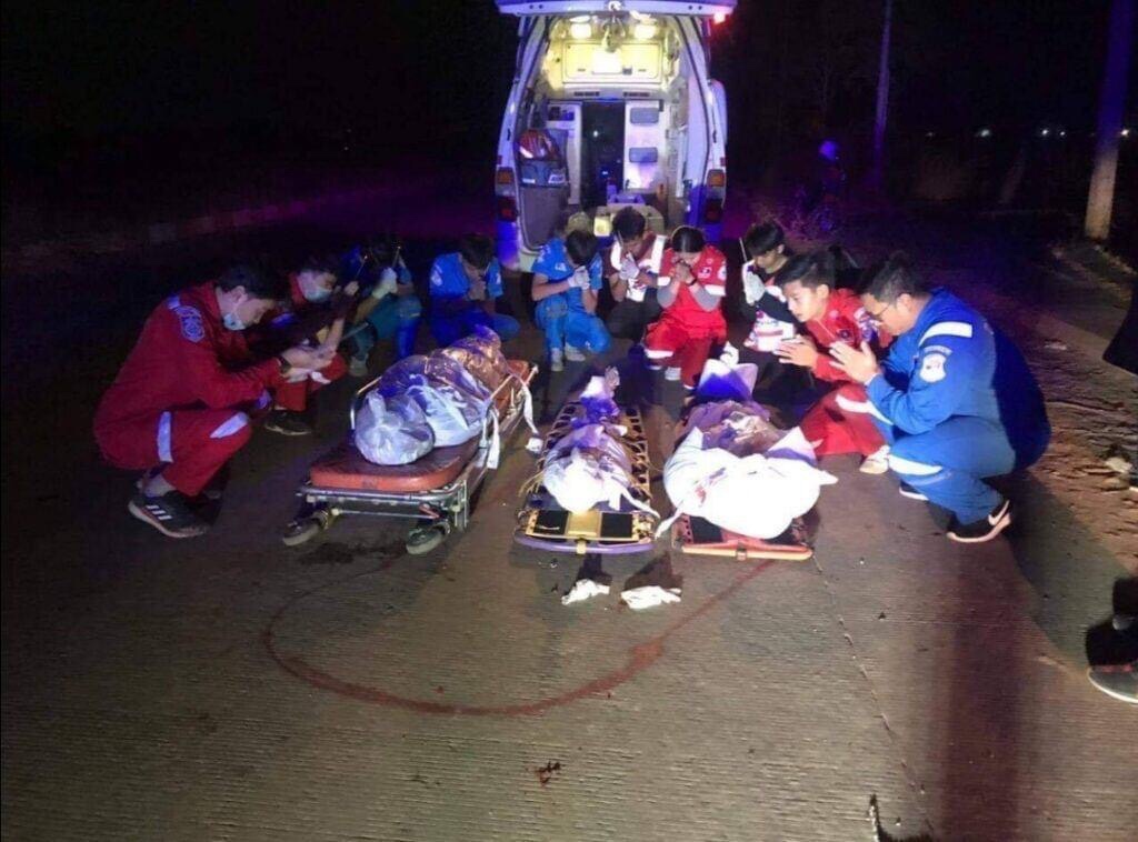 ທີມກູ້ຊີບກູ້ໄພນະຄອນຫຼວງ (ສູນສັ່ງການ) ຈຶ່ງໄດ້ອອກກວດສອບເຫດພົບຜູ້ບາດເຈັບ 03 ຄົນເປັນເພດຊາຍ 2 ຄົນ ເພດຍິງ 1ຄົນ. ພົບວ່າຫົວໃຈຢຸດເຕັ້ນ ແລະ ຊິບພະຈອນບໍຕອບສະໜອງ ຫນ່ວຍກູ້ໄພເຮົາຈຶ່ງໄດ້ທຳການ CPR (ຫຼືນນວດຫົວໃຈ) ແຕ່ກໍບໍ່ມີຜົນຕອບສະໜອງ.